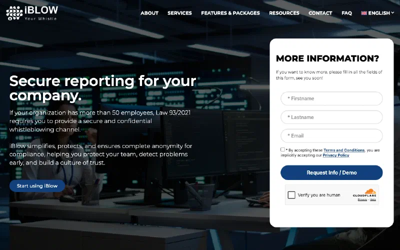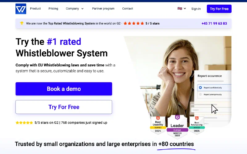 Whistleblowing platform with public monthly pricing, self-serve trial, and 25-language product coverage, legally seated in Poland.