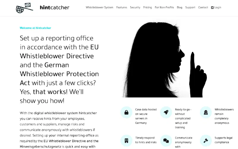 German whistleblowing platform. Tiered pricing by employee count.