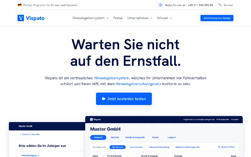 German whistleblowing system. Flat €79/month, unlimited users and cases.
